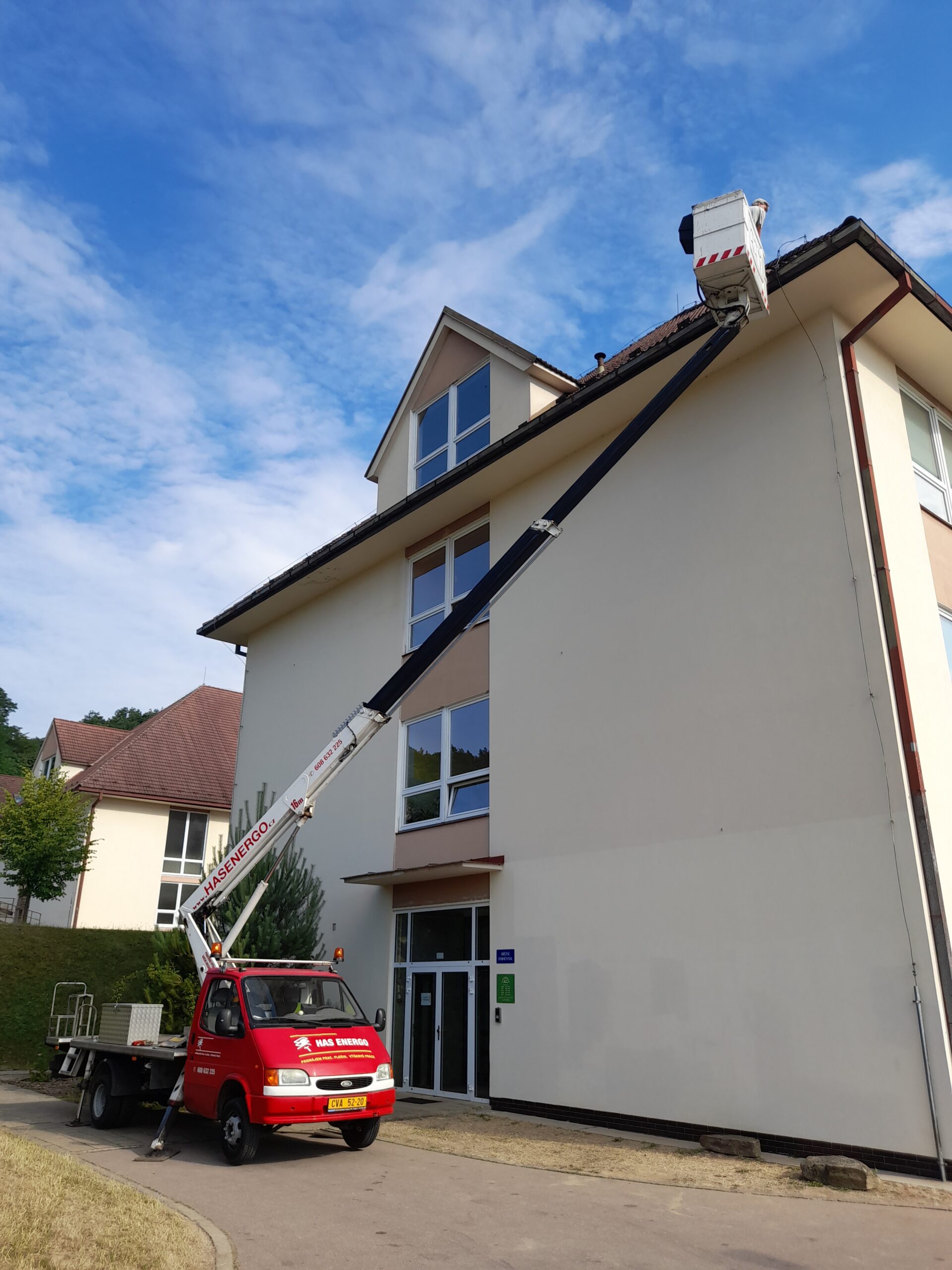 Pro práce v nižších výškách využíváme montážní plošinu Renault Master s dosahem 11 metrů, která nevyžaduje patkování. Obě plošiny jsou ideální volbou pro efektivní a bezpečné práce ve výškách. Kontaktujte nás pro více informací.